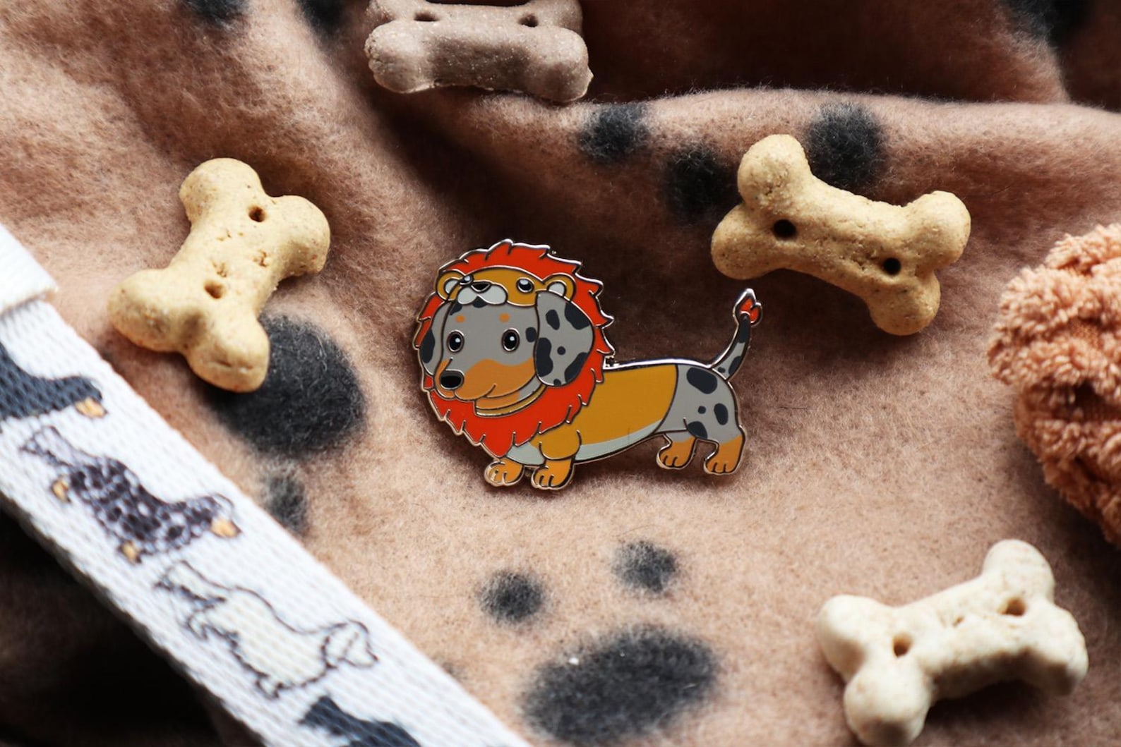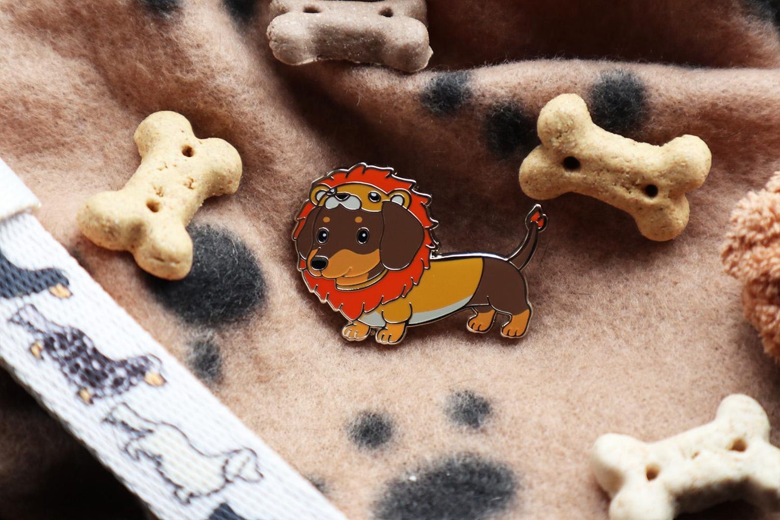 2.5 inch Cute Lion Dachshund Enamel pins. 4 colourways to choose from: