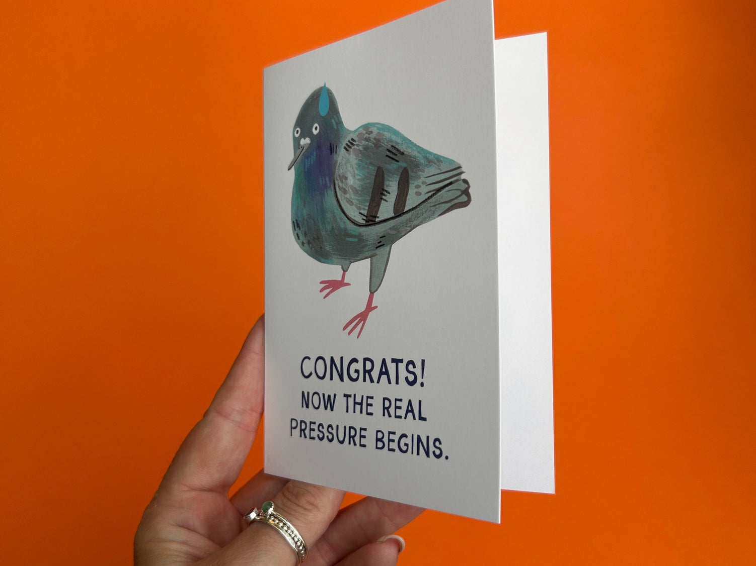 Ok, you got the job, the promotion, the degree.. whatever it is.. unfortunately the work doesn't stop there.. A keep going, you got this card with a perplexed illustrated pigeon to really give off the vibe of maybe you girl bossed to close to the sun... and have more work to do because you really are that amazing!