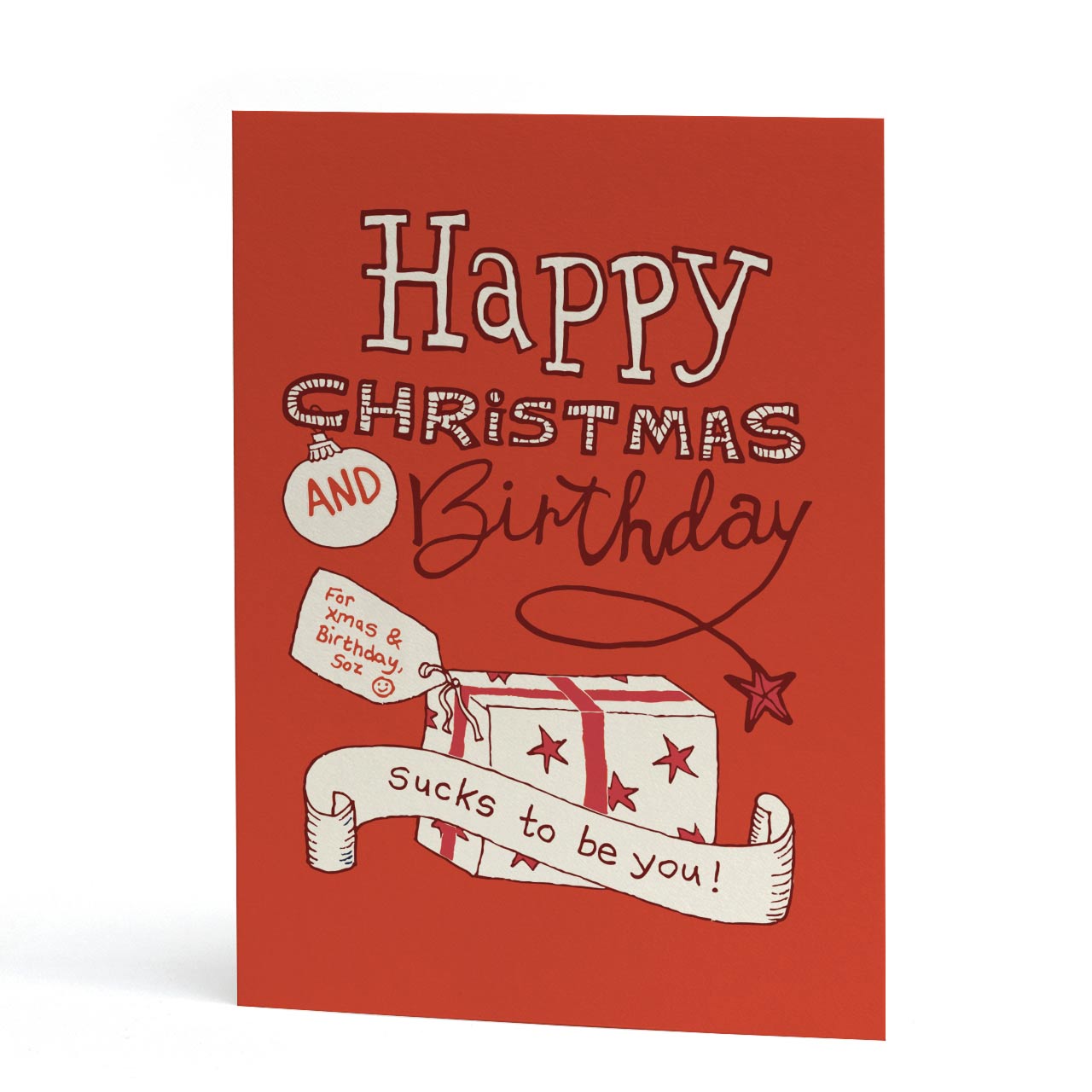 Having your birthday on the 25th December, or even NEAR to Christmas can suck big time! One present instead of two, anyone?? Er... no thanks! Get this card for your long suffering sibling, friend or colleague with a birthday just that liiiiittle bit too close to Christmas, and empathise with their yearly predicament!