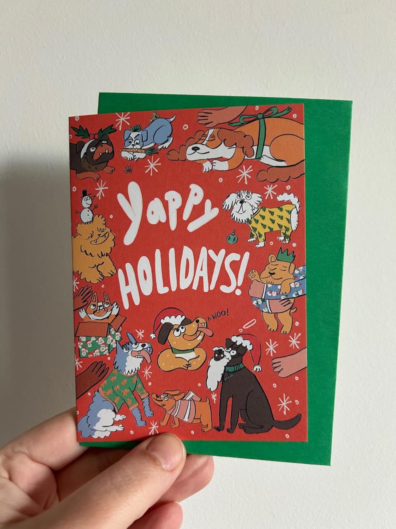 [{"id":57529598738813,"title":"Default Title","option1":"Default Title","option2":null,"option3":null,"sku":"HN 2B 144","requires_shipping":true,"taxable":true,"featured_image":null,"available":true,"name":"Yappy Holidays Card","public_title":null,"options":["Default Title"],"price":350,"weight":0,"compare_at_price":null,"inventory_management":"shopify","barcode":"HN 2B 144","requires_selling_plan":false,"selling_plan_allocations":[]}]