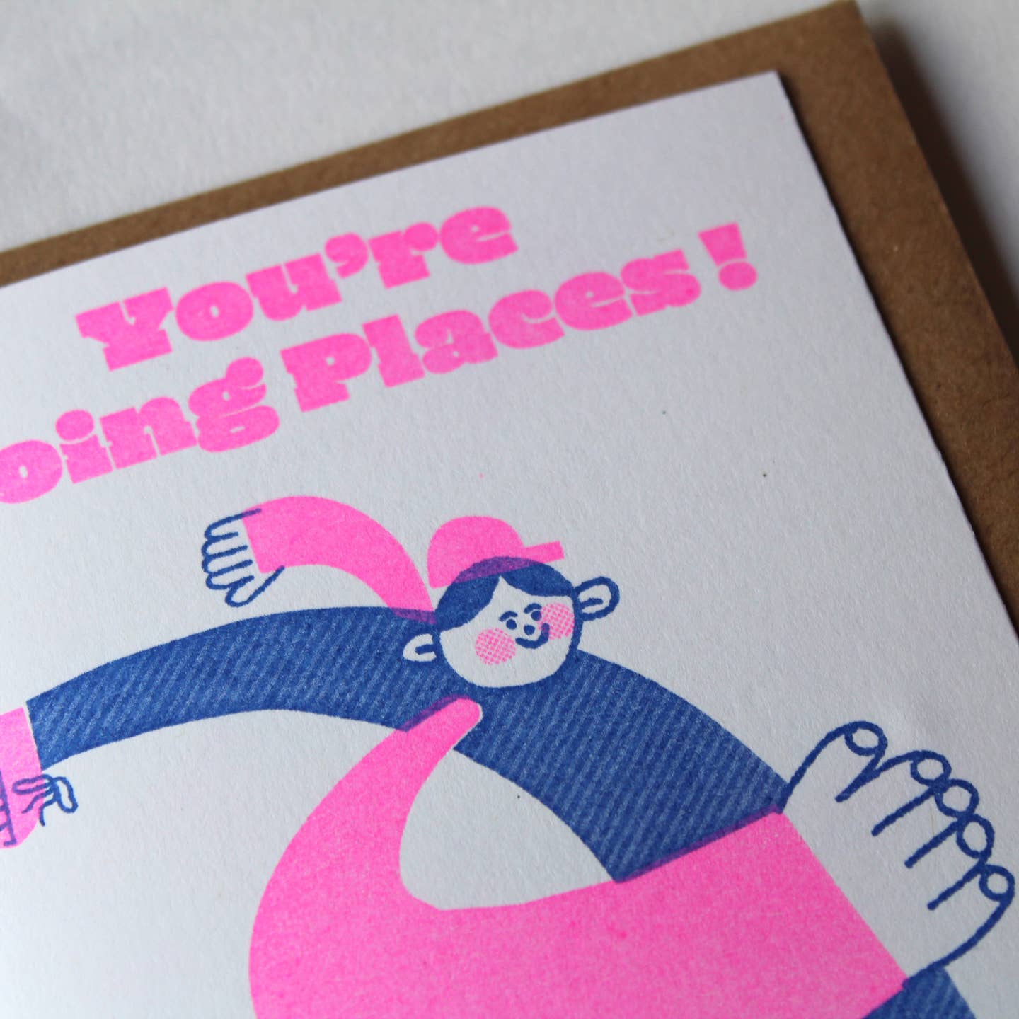 A6 CardRisograph Printed in West YorkshireFluoro Pink and Navy Blue Riso InkOn 250gsm Cyclus Offset White 100% Recycled Paper