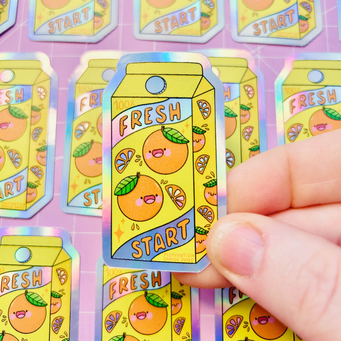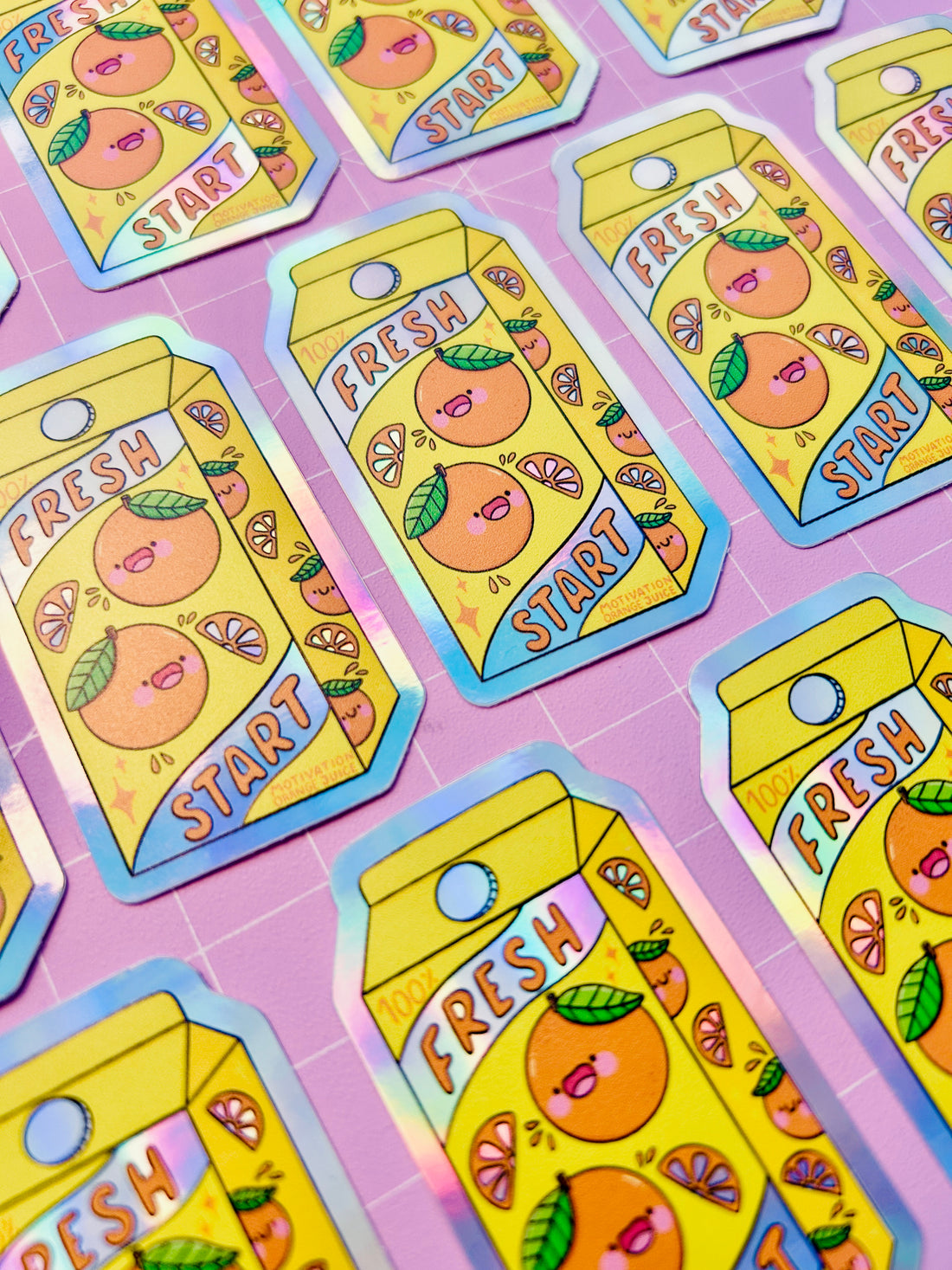 This fresh start orange juice sticker, is a zesty reminder to fuel your optimism and inspire fresh beginnings wherever you go. You might not be able to have a physical glass of this OJ everyday but slap the sticker somewhere you see each day as a reminder.