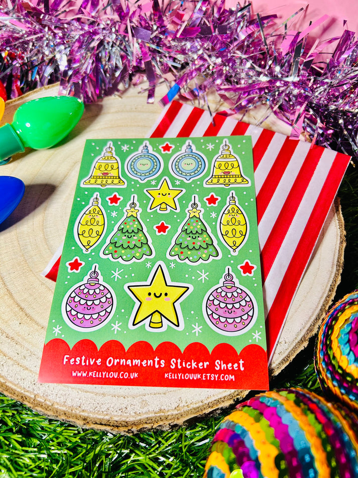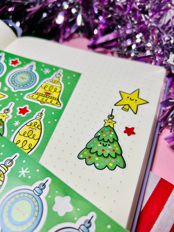The Christmas Decorations Matt Vinyl Sticker Sheet! Perfect for jazzing up your Christmas crafts, scrapbook, journal, or planner, this set of stickers will add some festive fun to any project! So spread the holiday cheer, one stick at a time.