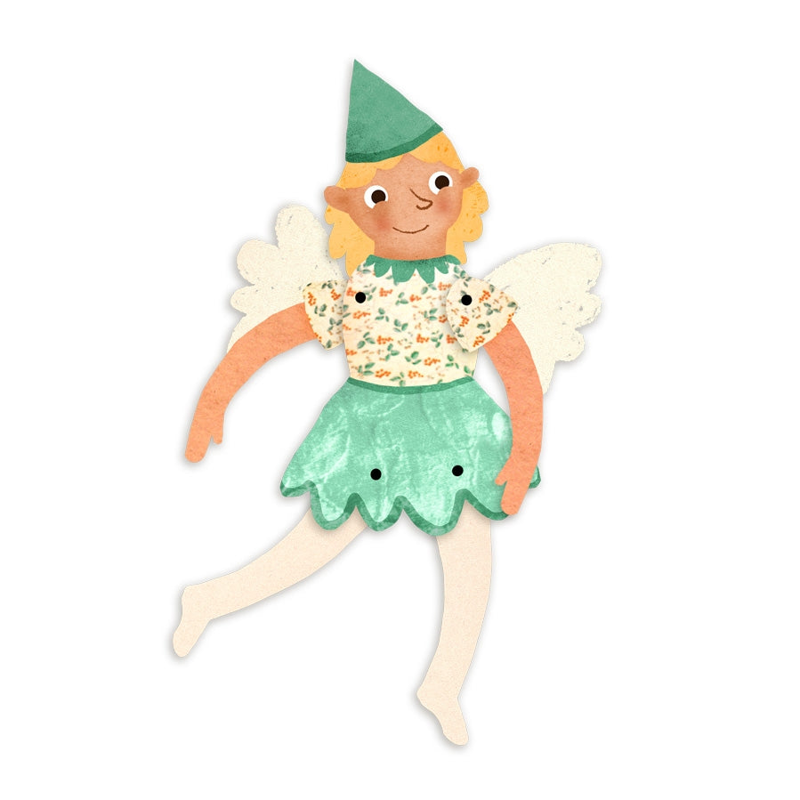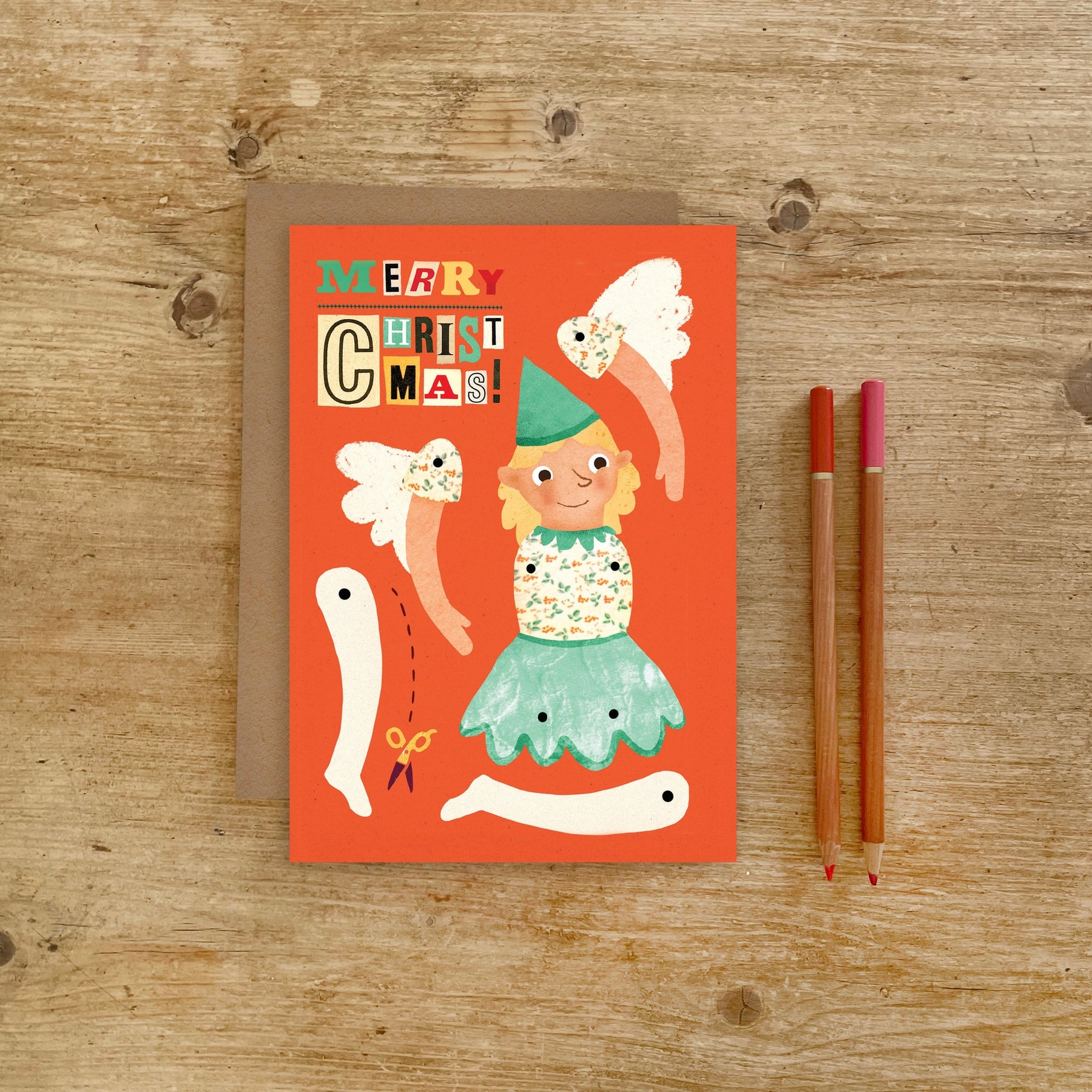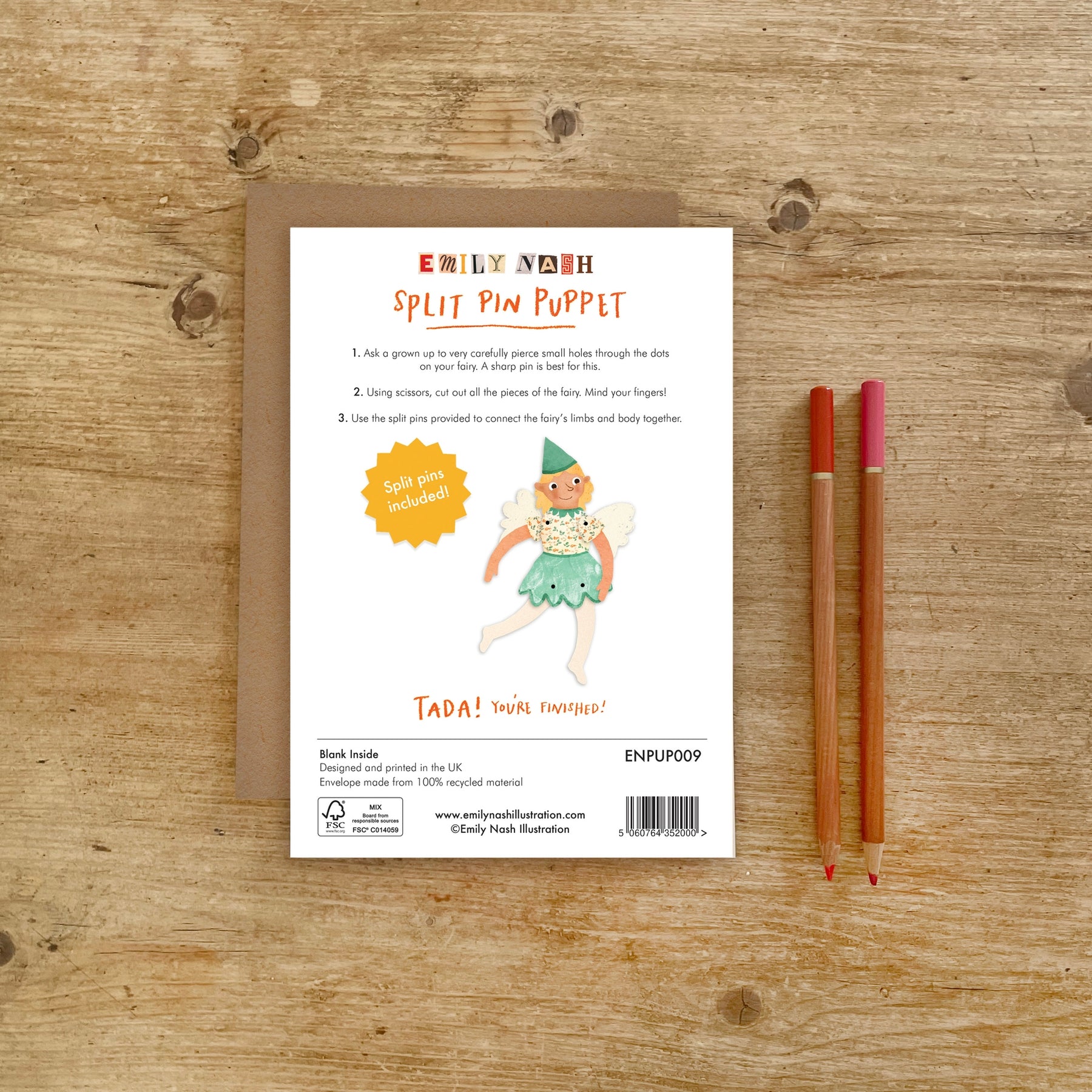 Illustrated Christmas Fairy Split greeting card which can be cut out to make a split pin puppet!