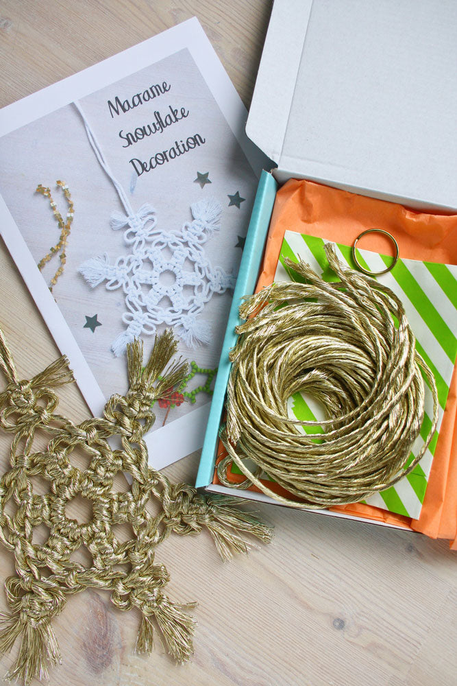 This Let It Snowflake kit has everything you need to create a macrame snowflake decoration!  The finished snowflake will measure 18cm -20cm depending on your tension and length of fringes and is ideal to hang on a wall or above a fireplace. The detailed instruction leaflet uses clear colour photos and text to guide you through the making of your snowflake. Suitable for macrame beginners.