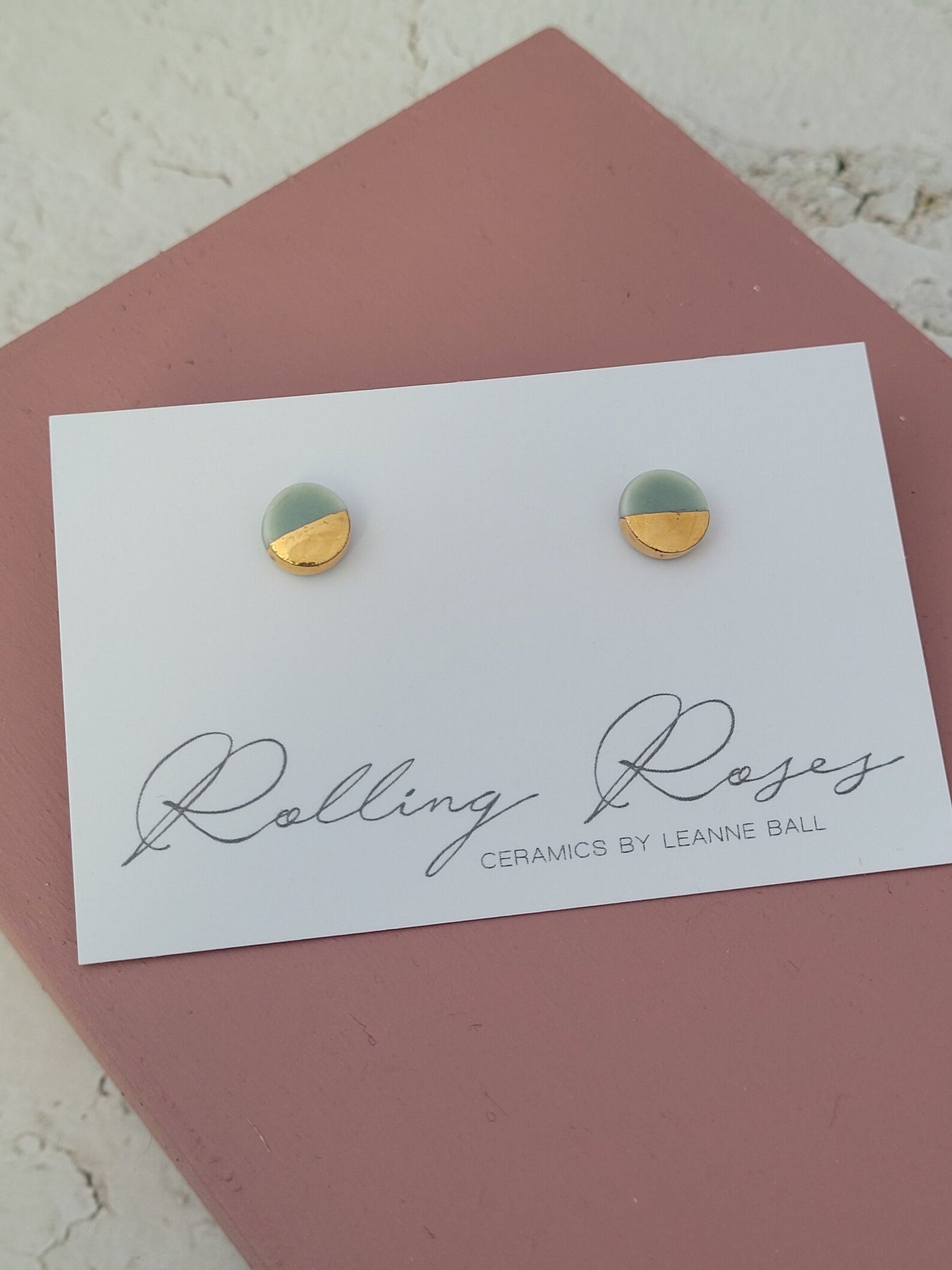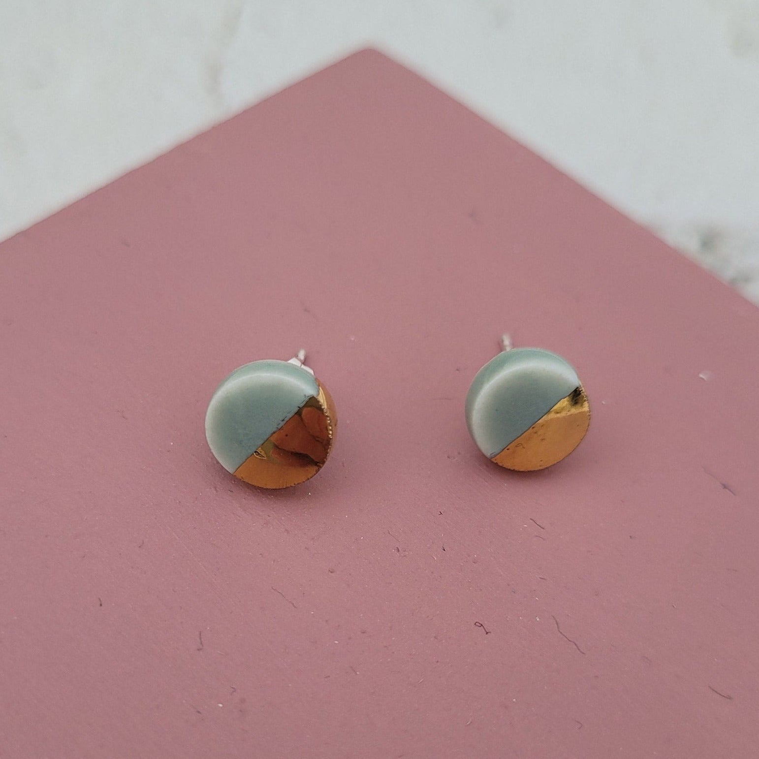 A pair of  porcelain studs with 22k gold lustre detail. Ear posts are silver plated hypoallergenic studs for pierced ears.