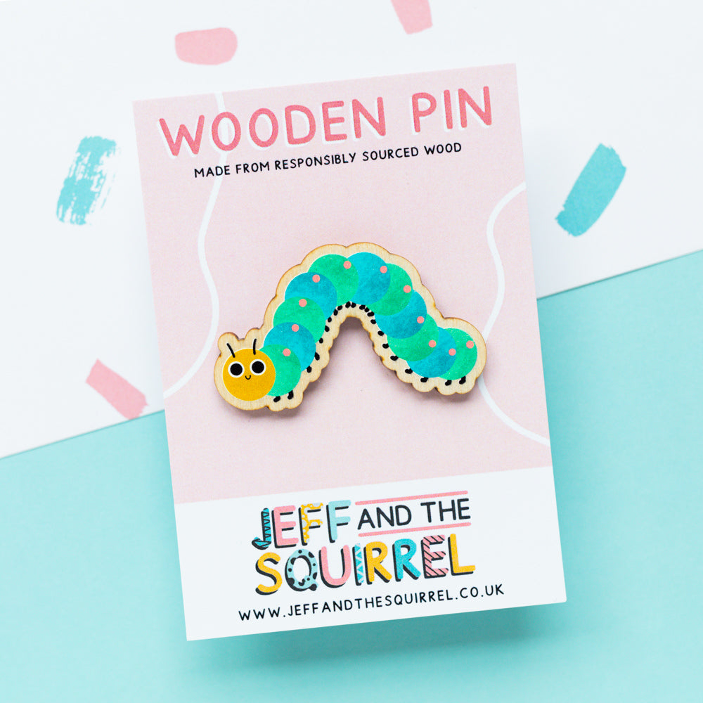 The cutest green and blue caterpillar you've ever seen! Made from sustainably sourced wood as an eco friendly alternative.
