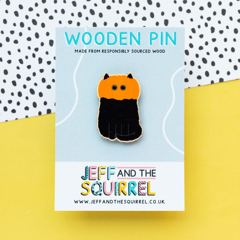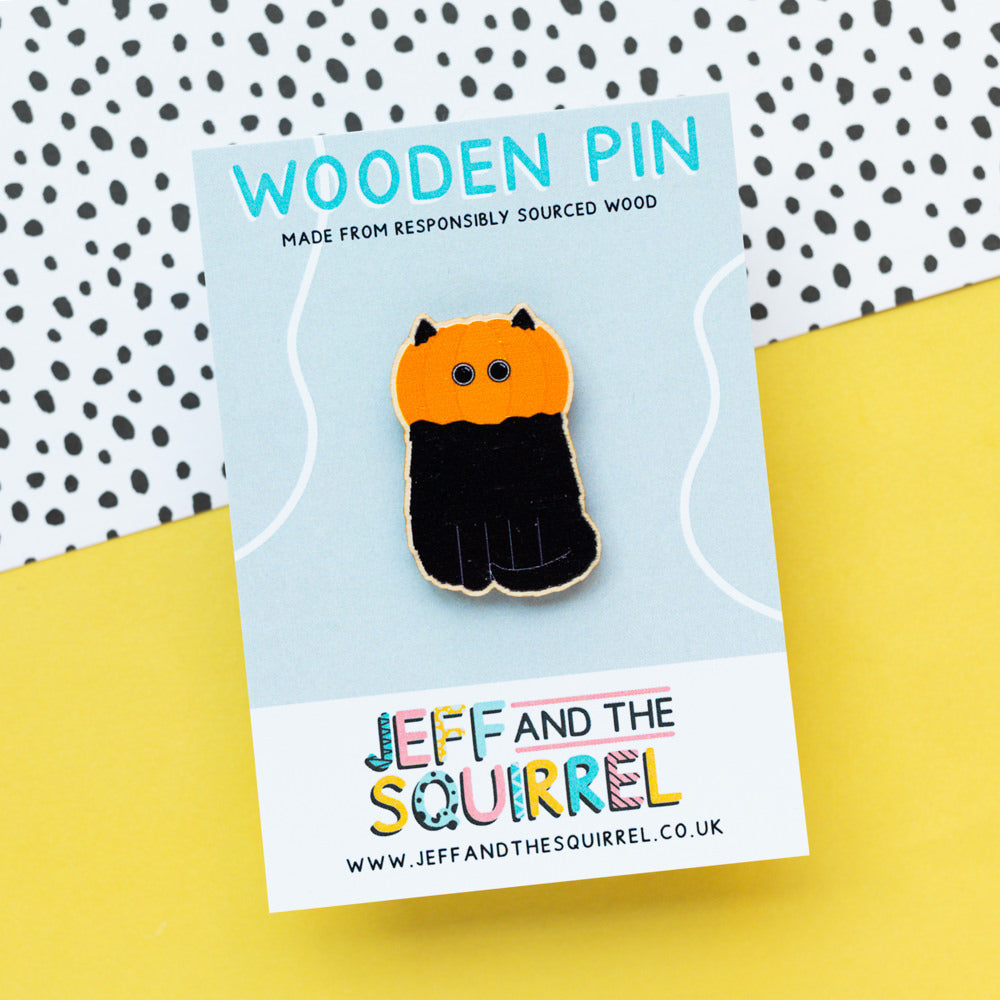 Turn spooky into cute with our pumpkin cat wooden pins!