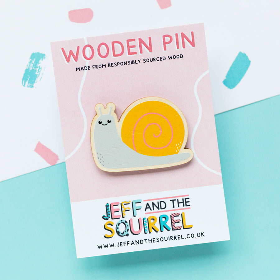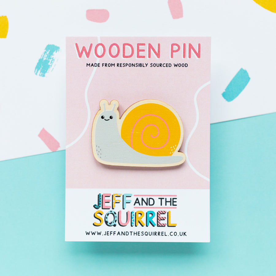The cutest grey and yellow snail you've ever seen! Made from sustainably sourced wood as an eco friendly alternative.