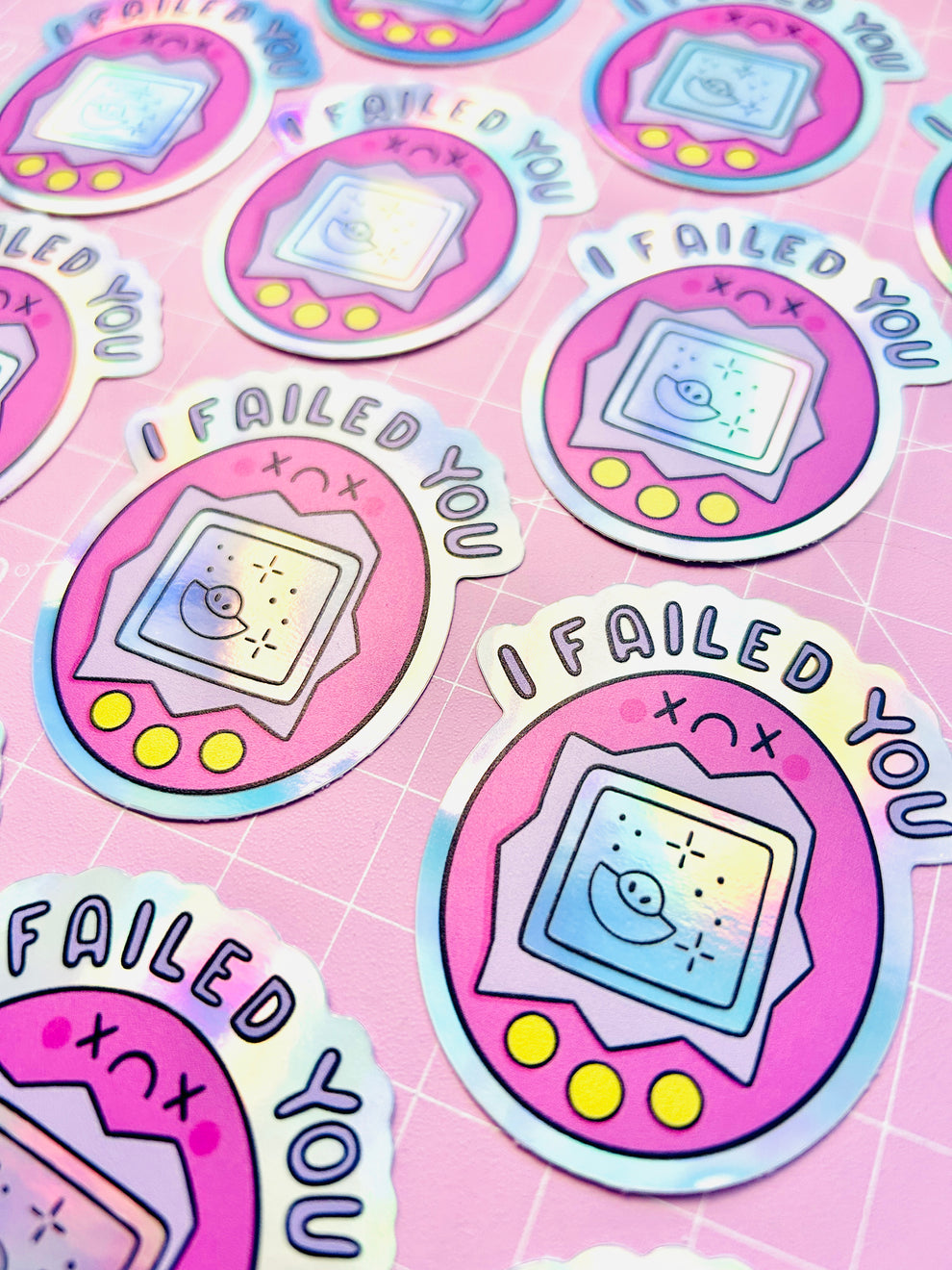 This holographic sticker is just a little reminder and an apology to the spirit of our digital pets who passed. We acknowledge that we failed them, but lets face it, we were kids heh