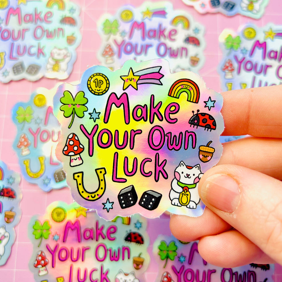 Create your own fortune with our super cute - Make Your Own Luck holographic sticker.