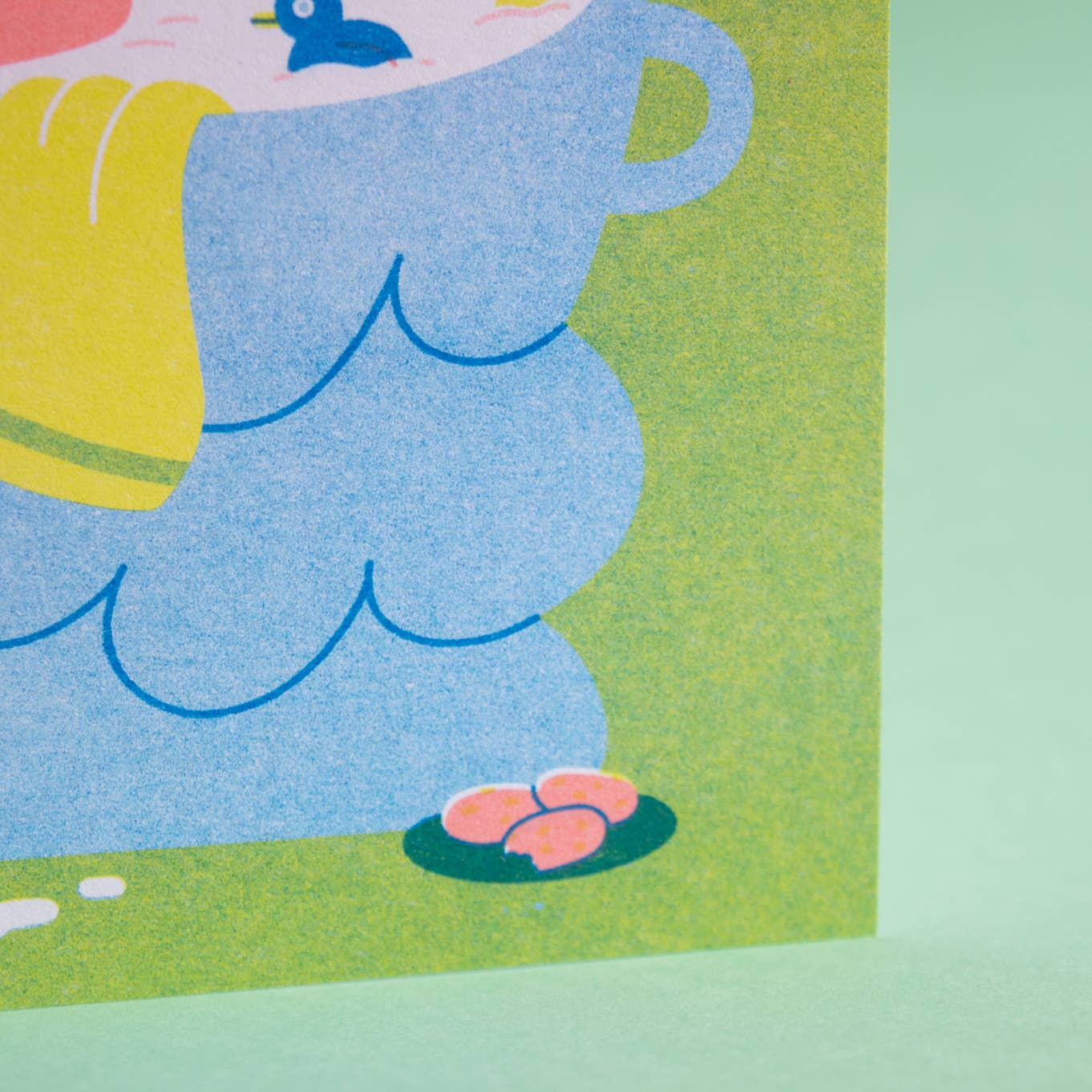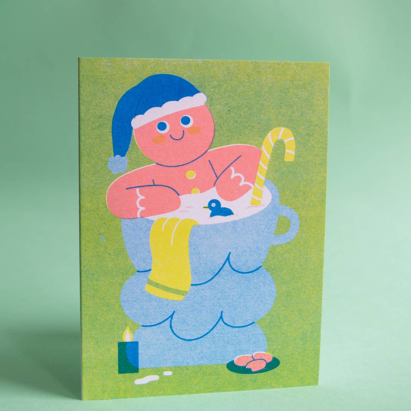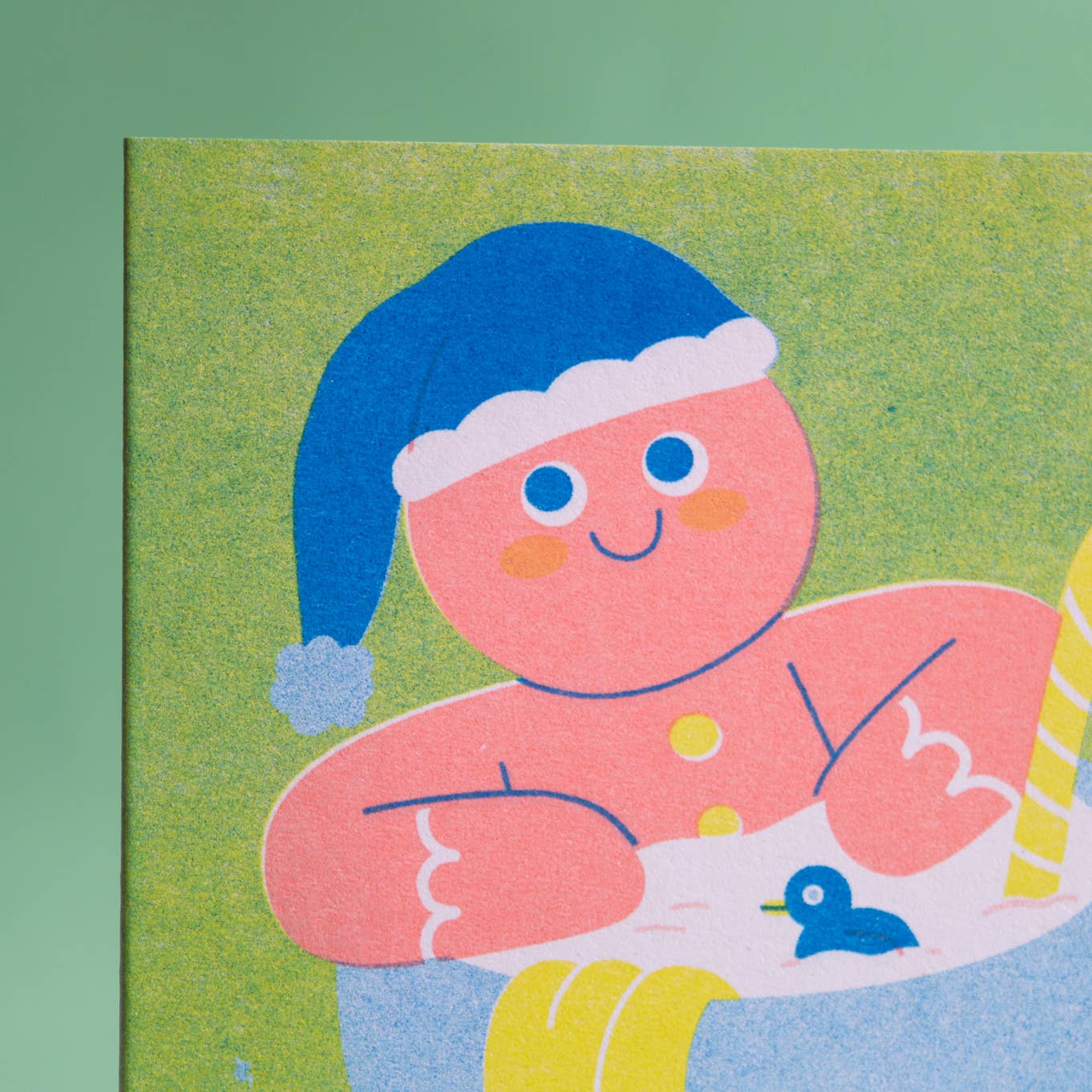 Gingerbread - Seasonal card Risograph printed card using 250gsm context paper, made from 100% recycled post-consumer waste. Riso is an eco-friendly print process with a unique aesthetic. Blank inside.