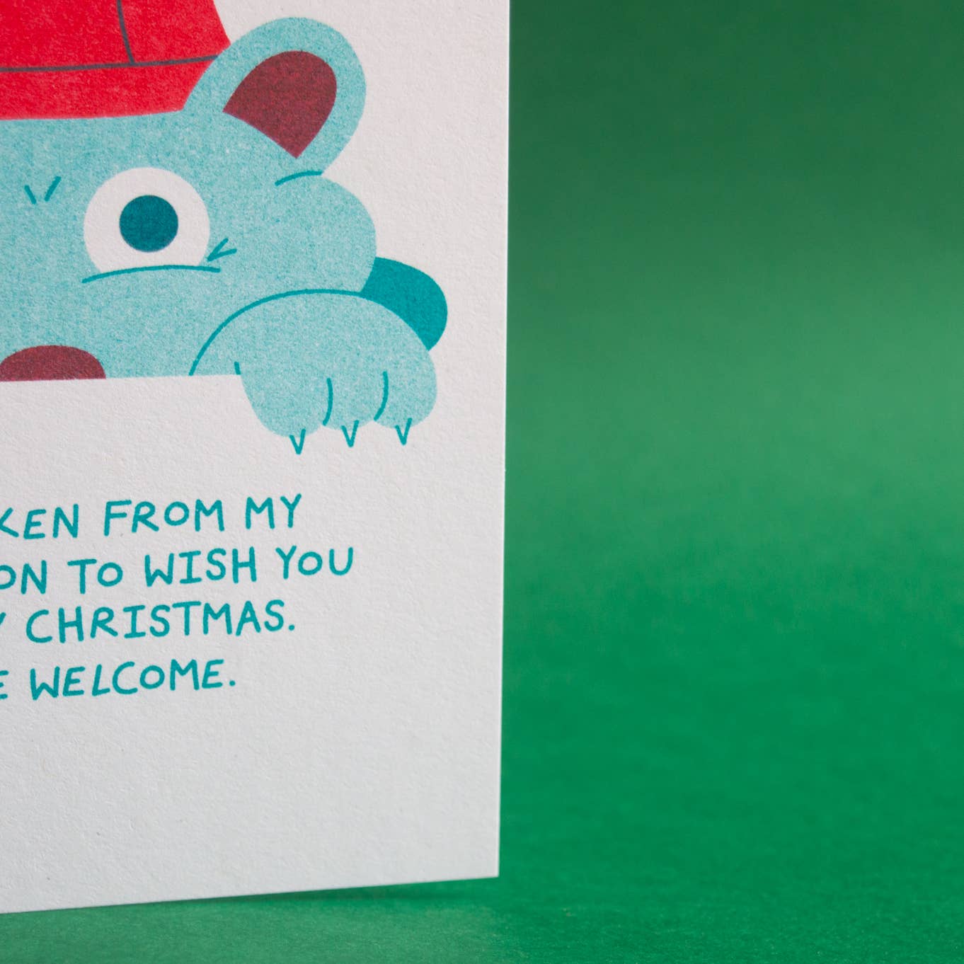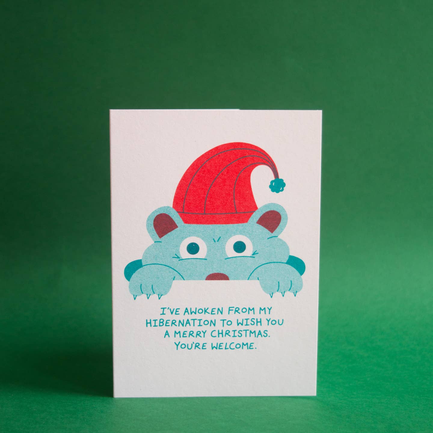 Hibernation - Seasonal card Risograph printed card using 250gsm context paper, made from 100% recycled post-consumer waste. Riso is an eco-friendly print process with a unique aesthetic. Blank inside.