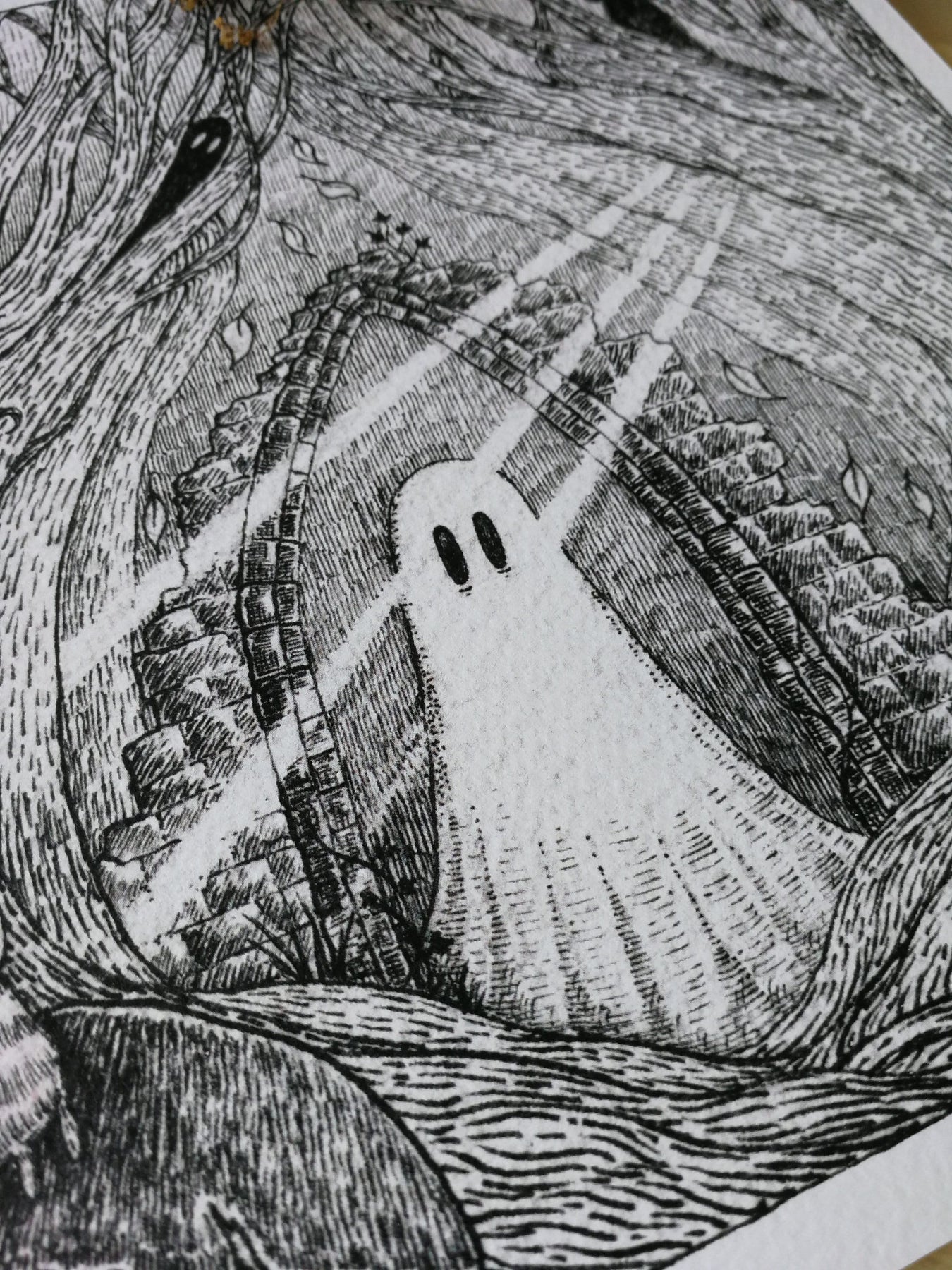 A luxury art print of a spooky woodland scene, taken from my book Fragments. Specially printed to include the accompanying poem to the reverse.