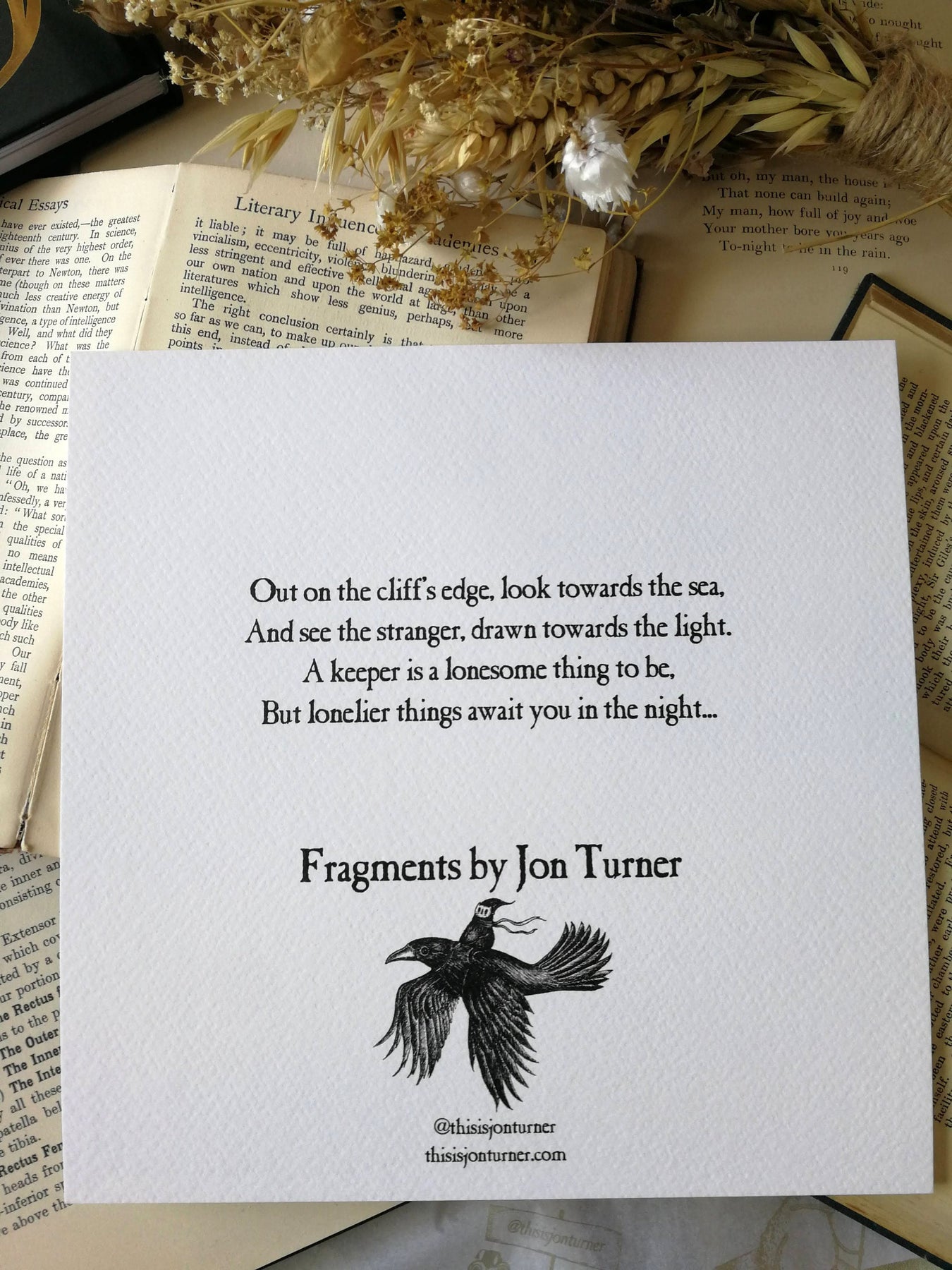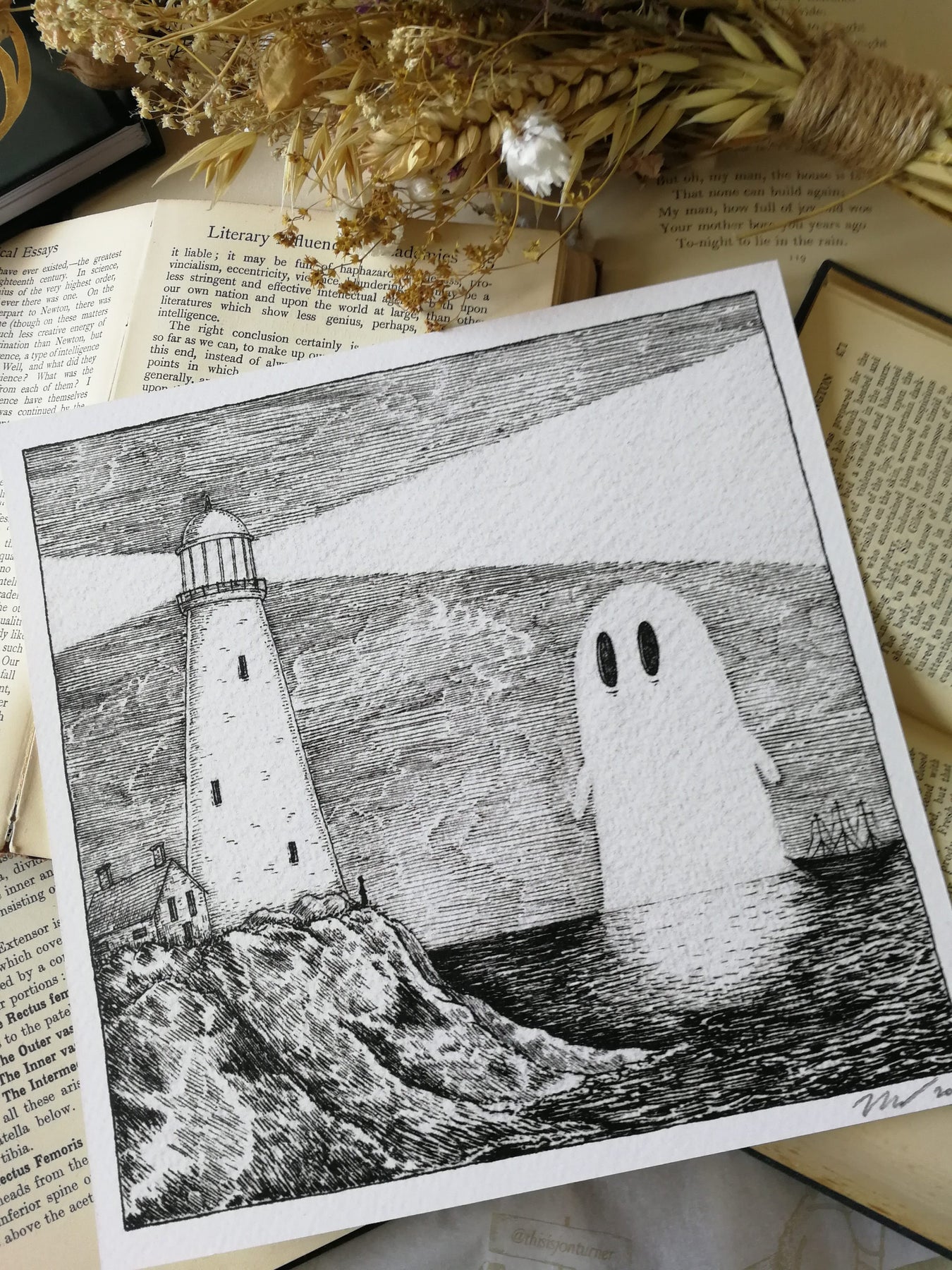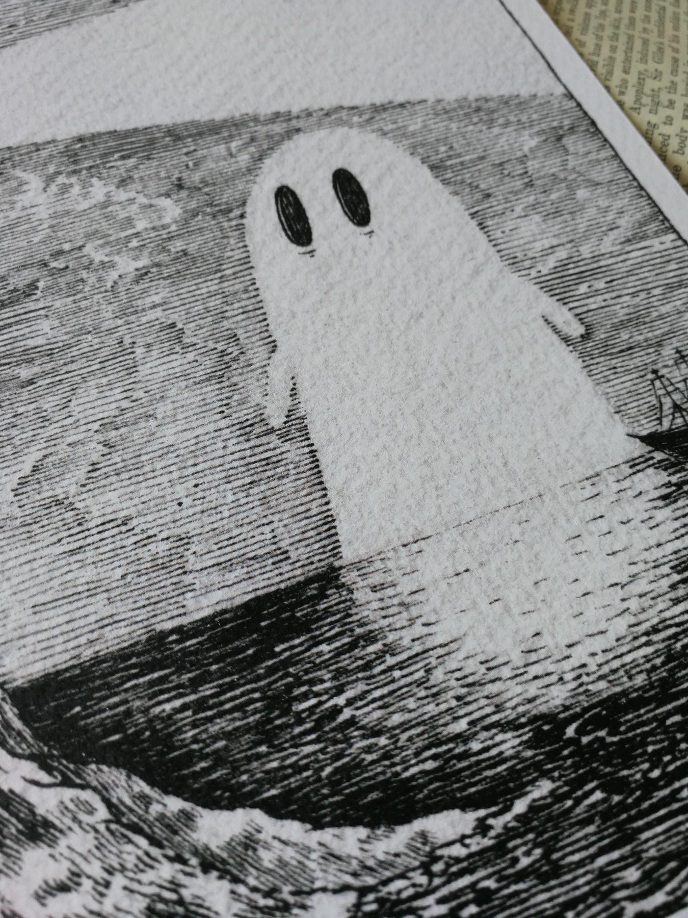 An art print of a spooky visitor, taken from my book Fragments. Specially printed to include the accompanying poem to the reverse.