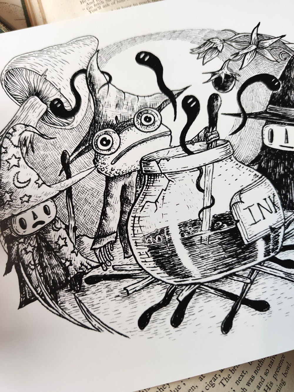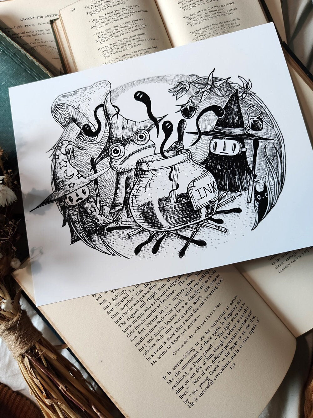 Digital print on smooth heavy silk 300gsm card; black ink on a white background.