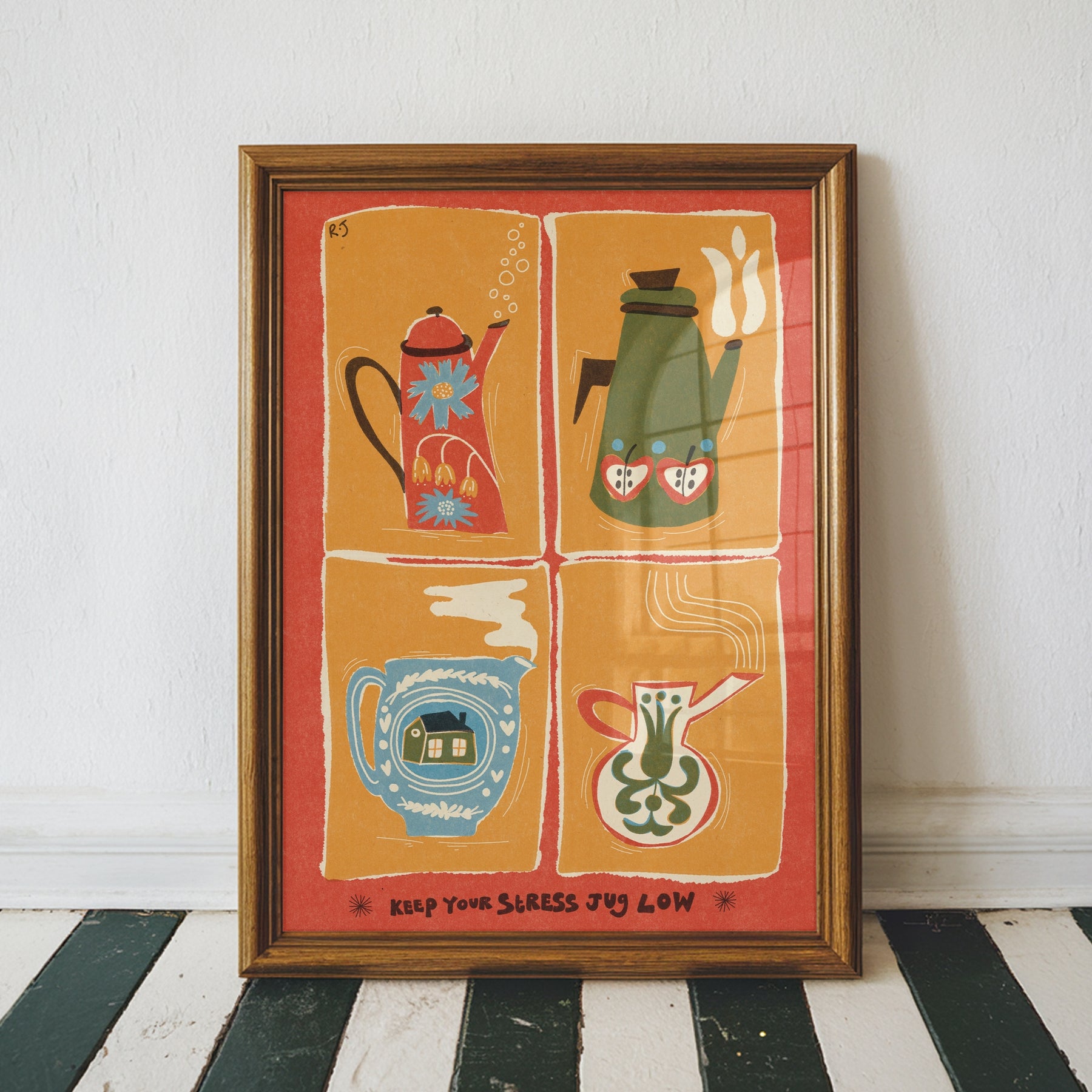 Bring a touch of folk charm to your space with the 'Keep Your Stress Jug Low' print!