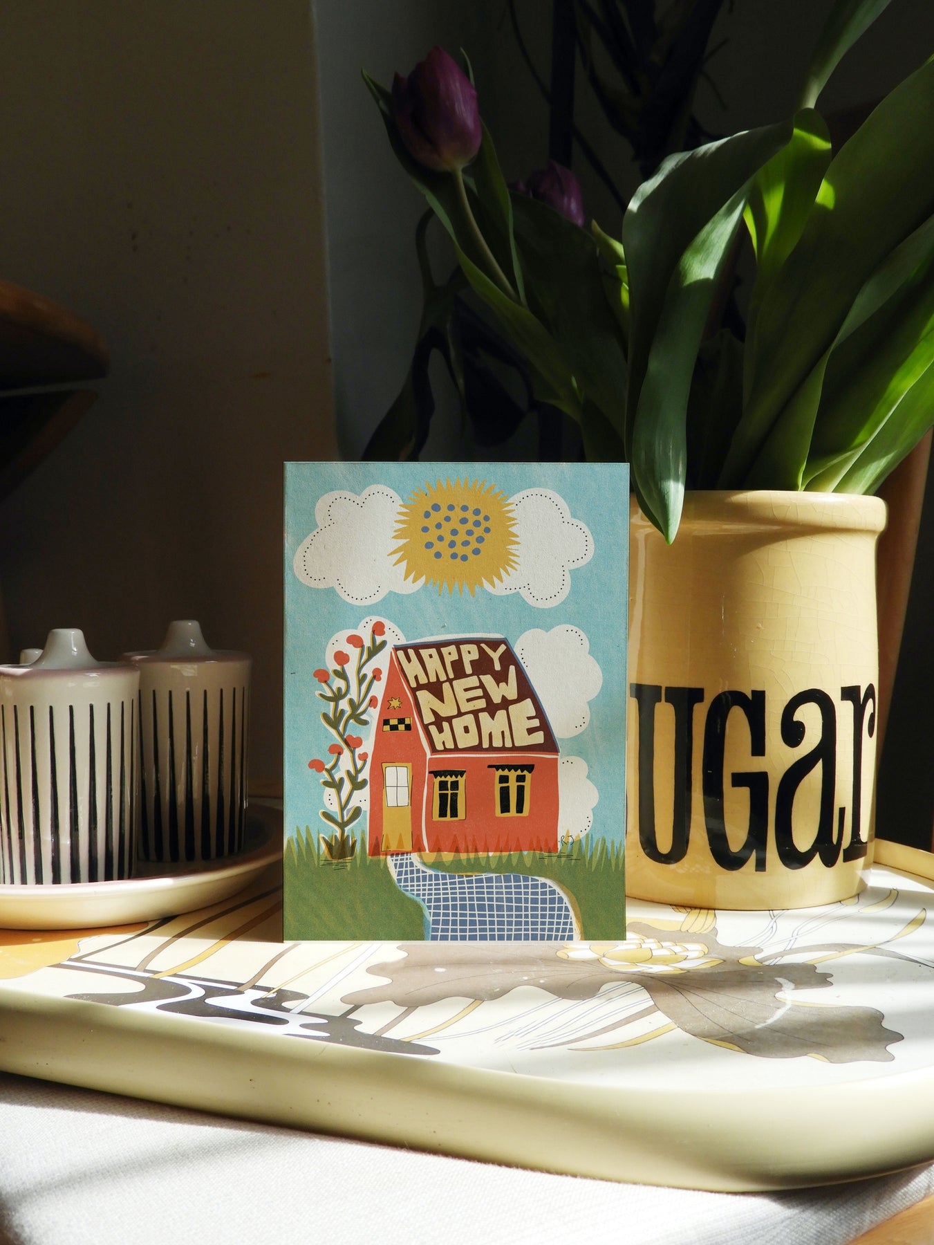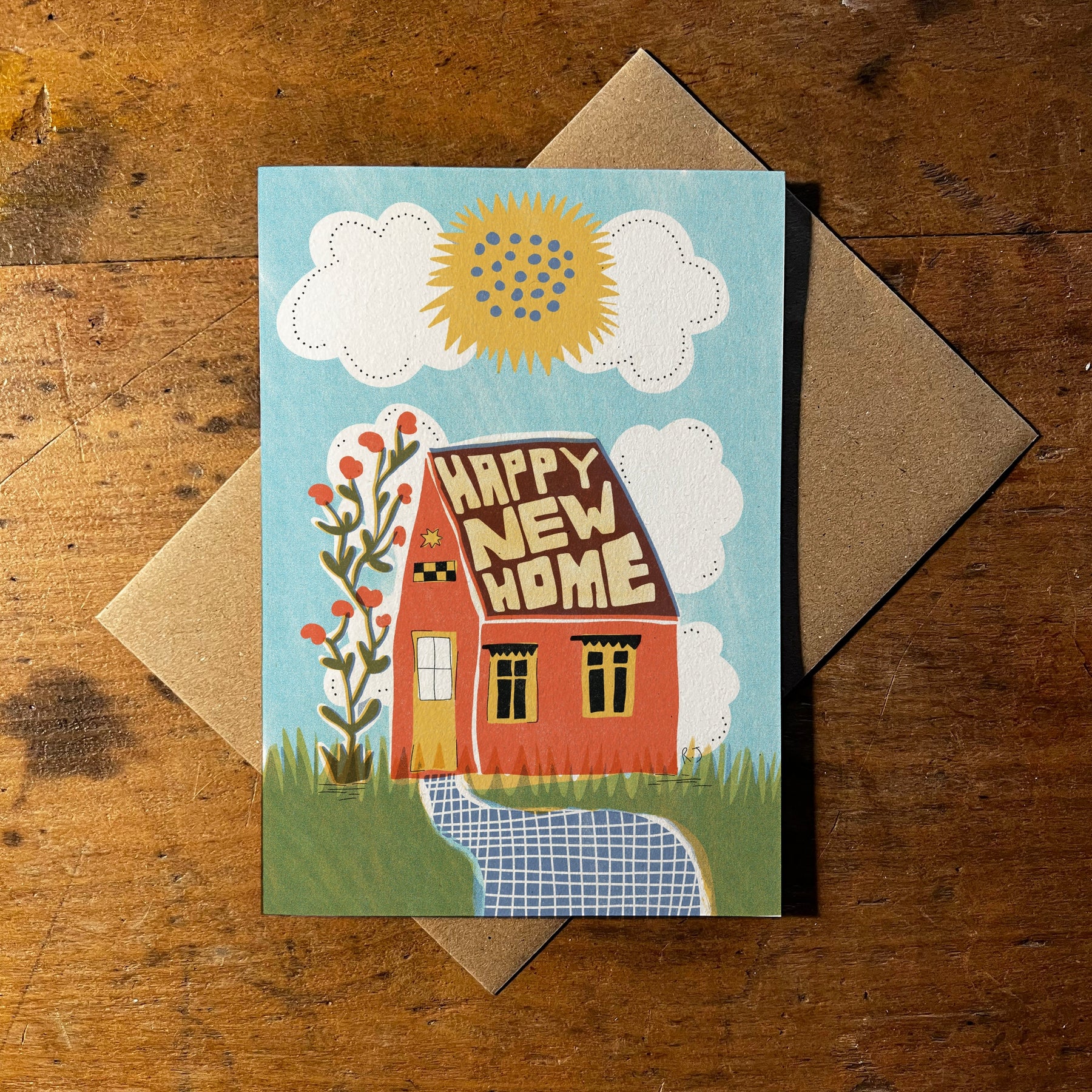 Celebrate a fresh start with this beautifully designed new home card, inspired by folk art and Risograph printing. Featuring a charming hand-illustrated house design, this card is perfect for congratulating friends, family, or loved ones on their housewarming.