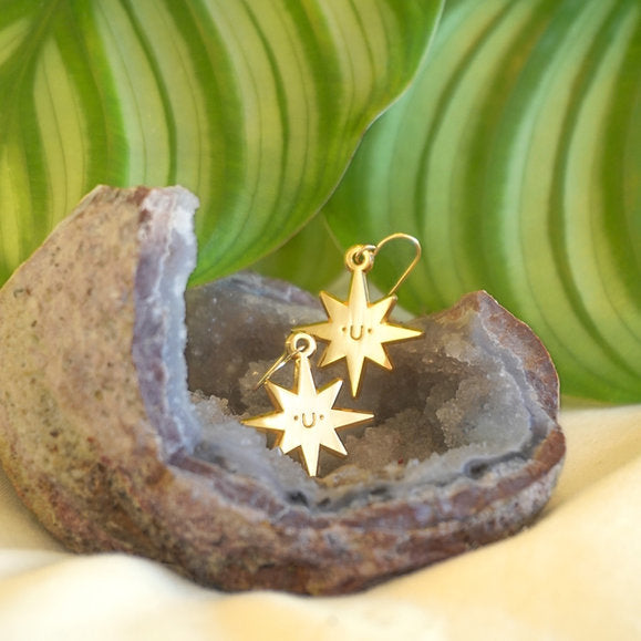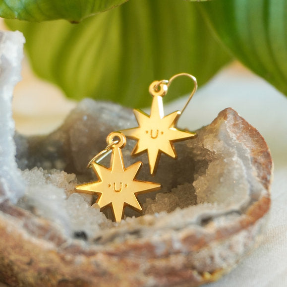 Add some cuteness to any outfit with these gorgeous gold smiley star earrings!