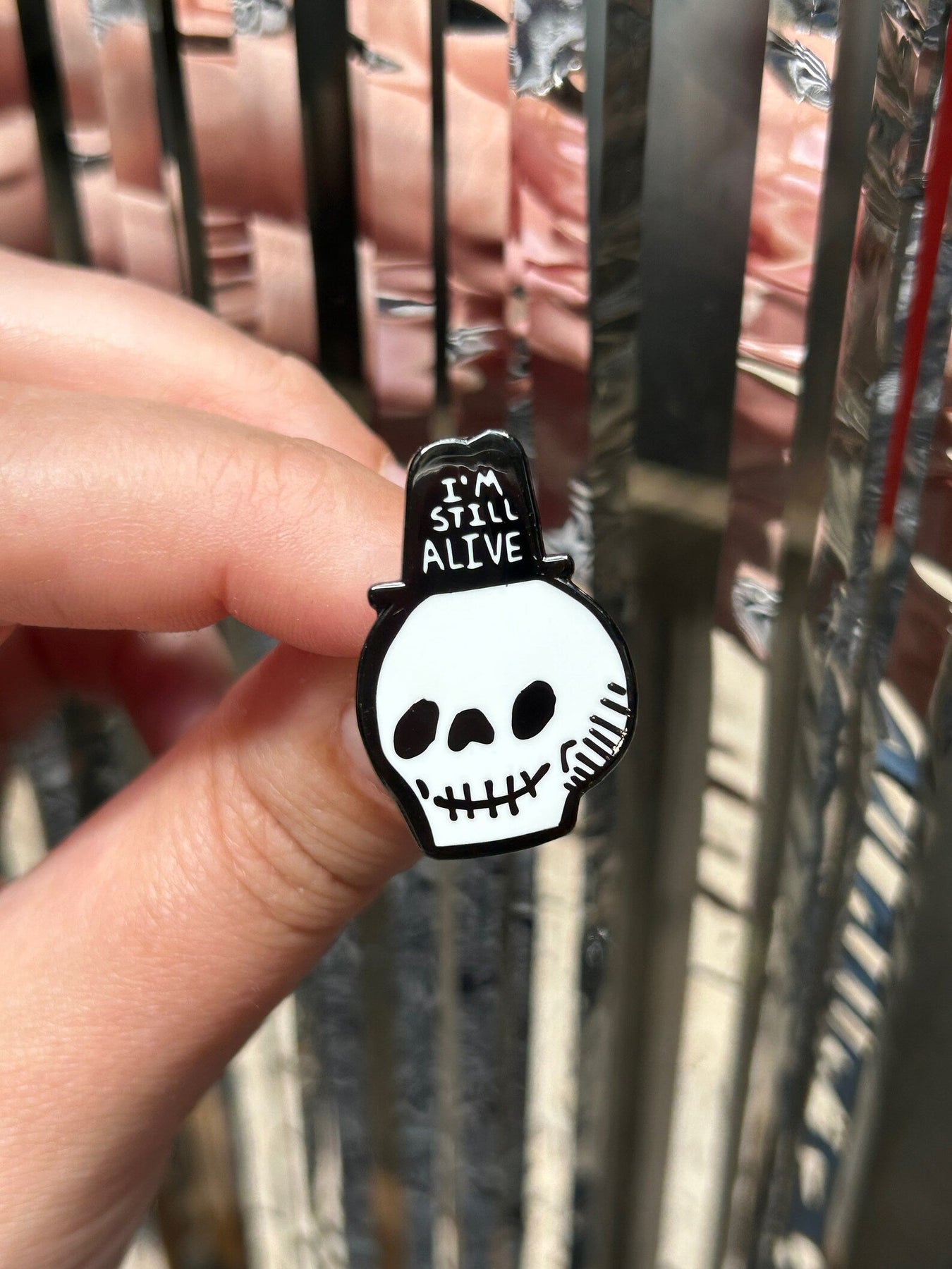 This hard enamel pin is a tongue in cheek reminder that life isn’t so bad, really. With four different colour variations, show your positive and spooky side with this skeleton and his lovely fancy hat!