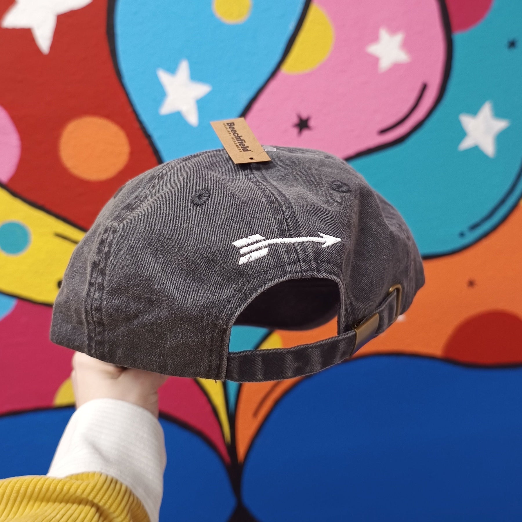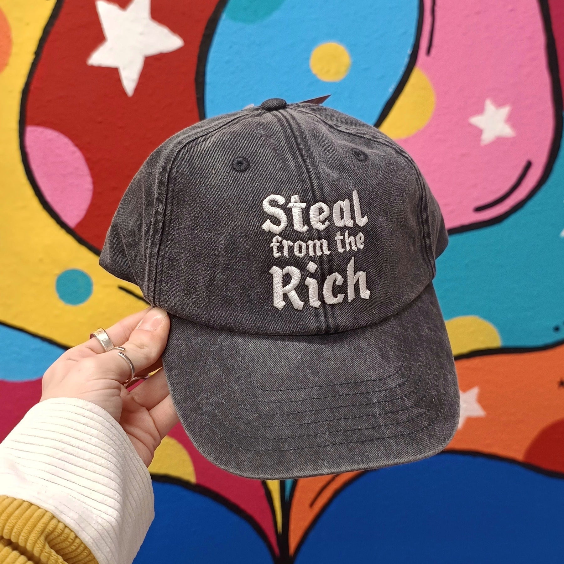Vintage style baseball cap, embroidered with Steal from the Rich on the front and arrow detail on the back